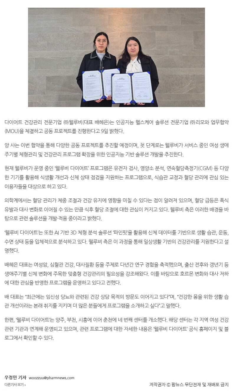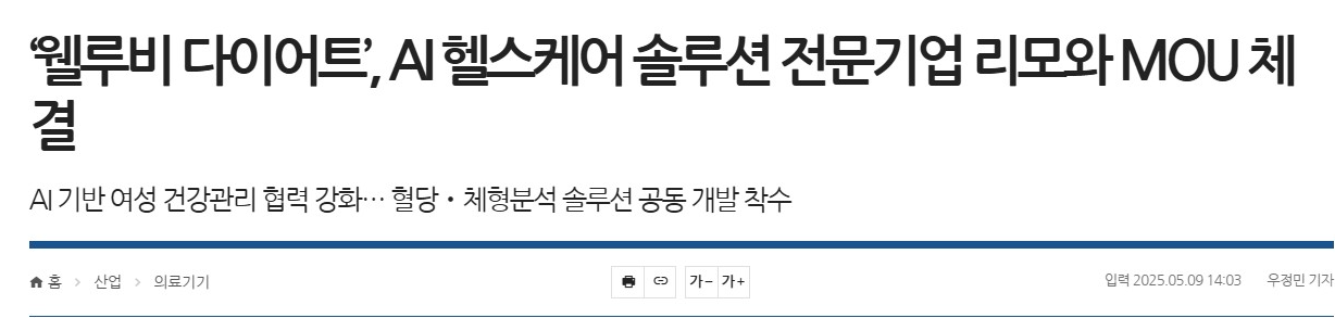 ¡®À£·çºñ ´ÙÀÌ¾îÆ®¡¯, AI ÇコÄÉ¾î ¼Ö·ç¼Ç Àü¹®±â¾÷ ¸®¸ð¿Í MOU ü°á