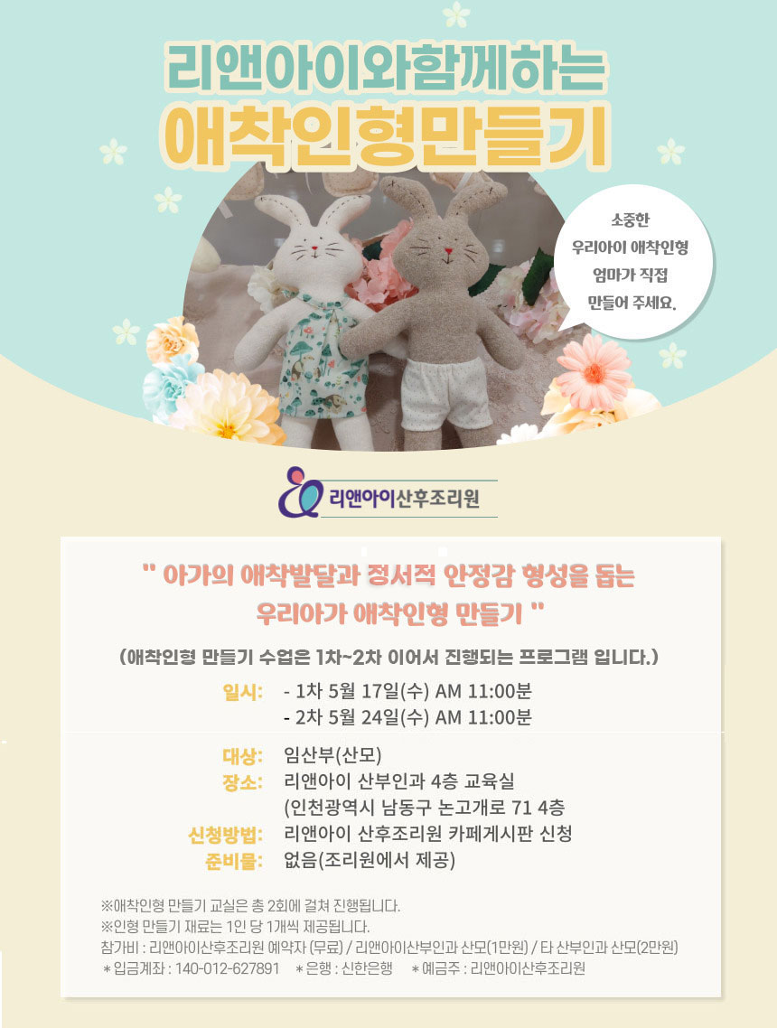 ¾ÖÂøÀÎÇü ¸¸µé±â ÇÁ·Î±×·¥Àº ÃÑ 2ȸ¿¡ °ÉÃÄ ÁøÇàµÇ¸ç, 17ÀÏ ¿ÀÀü 11½Ã 1Â÷ ¼ö¾÷, 24ÀÏ ¿ÀÀü 11½Ã 2Â÷ ¼ö¾÷À¸·Î ±¸¼ºµÅ ÀÖ´Ù.